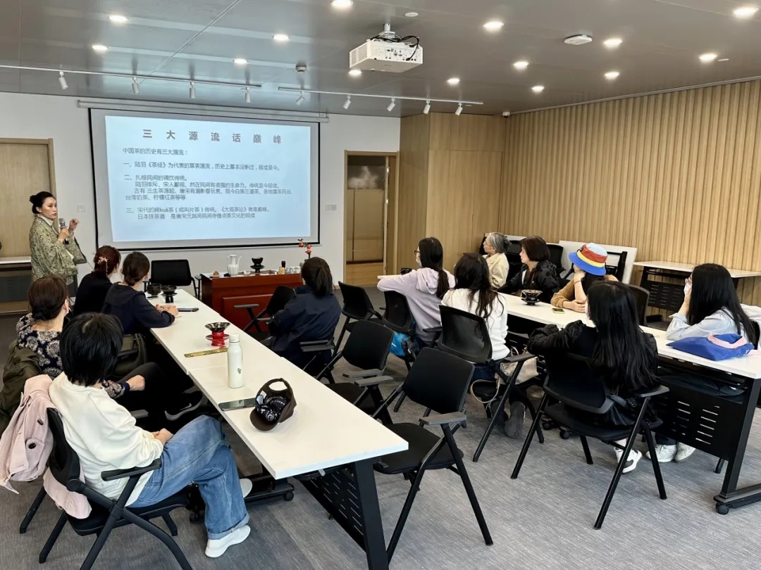 古人的饮茶方式与今时大有不同。唐代的陆羽撰写《茶经》开辟了茶学。宋代文化大盛,徽宗赵佶亲自撰写《大观茶论》阐释点茶精妙之法,成为研究宋人品茶的重要文献。文人画的兴盛,为宋人的品茶生活留下了大量直观的图像。老师以《大观茶论》为主轴,结合绘画作品,详细介绍了宋代人们制茶步骤与调饮方法。大家听得津津有味,对点茶这种现在已不太常见的吃茶方法有了初步认识。