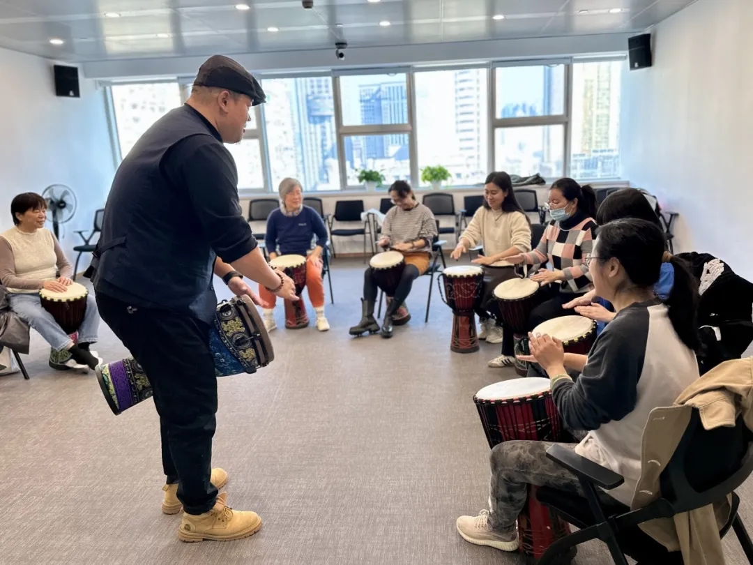 11月21日下午,黄浦区图书馆创客空间开展了非洲鼓教学体验活动。十位读者利用周五午休时间走进图书馆,体验非洲鼓节奏趣味,感受流行音乐伴奏魅力。