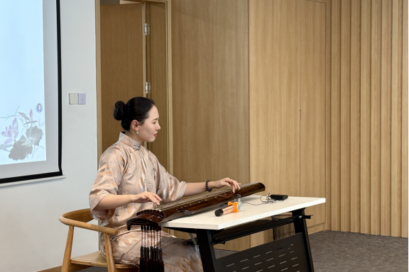 在现场演奏环节,《平沙落雁》、《流水》等经典名曲的片段赏析,让听众亲身感受到“韵外之致、弦外之音”的美学意境。指尖在丝弦上的吟、猱、绰、注化作情感的涟漪,在会场中荡漾开来。