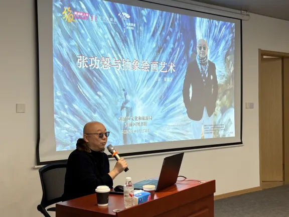 1月25日,由黄浦区文化和旅游局指导、黄浦区图书馆主办的“阅美黄浦·美育课堂”系列活动之“张功慤与抽象绘画艺术”专题讲座在黄浦区图书馆9楼开讲。讲座吸引了众多艺术爱好者参与,现场座无虚席。